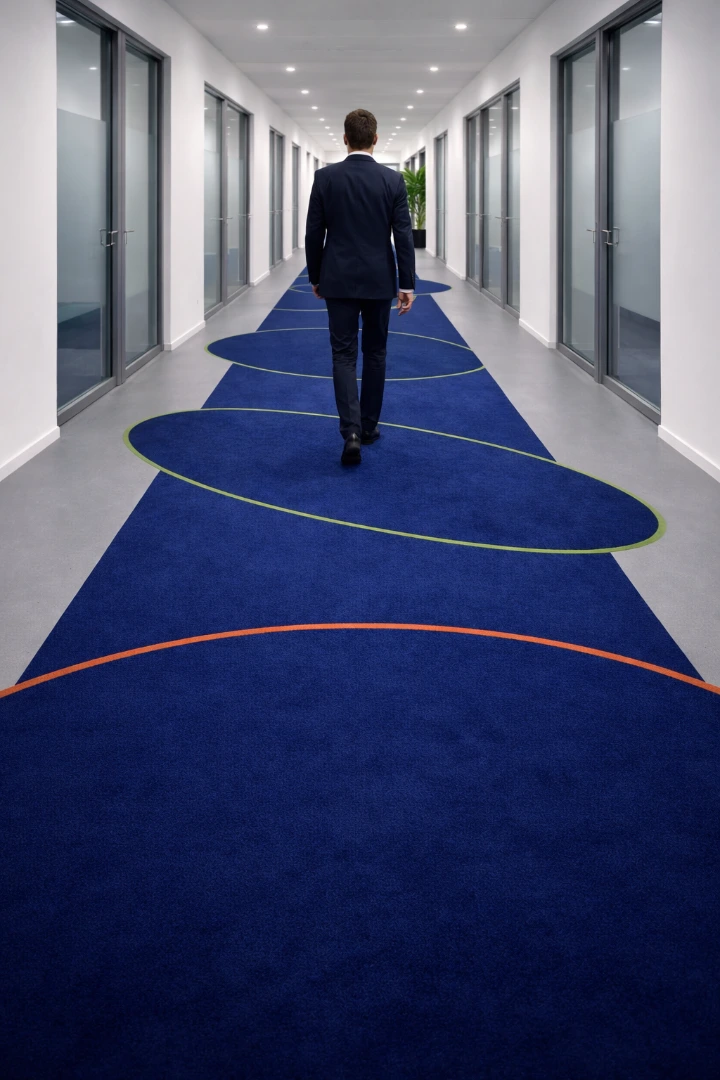 Effen tapijt absorbeert geluid en vermindert galm, wat bijdraagt aan een rustige en comfortabele akoestiek. Ideaal voor kantoren, hotels en woningen waar een serene sfeer gewenst is.